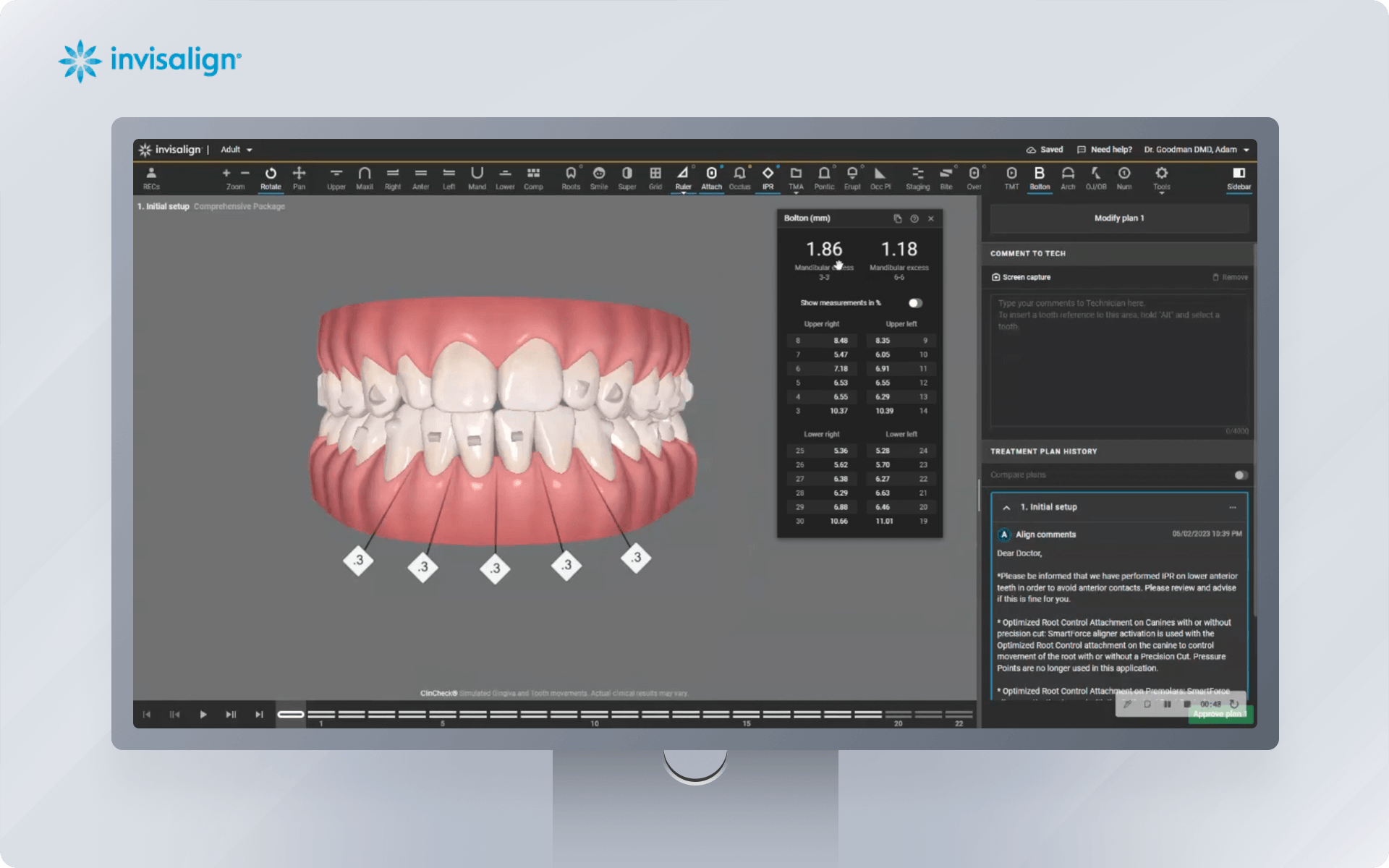 ClinCheck Pro supports a complete Invisalign treatment setup with tools such as: